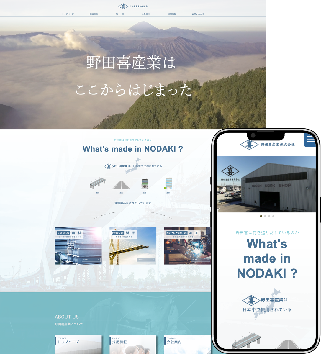 鉄鋼の総合商社。業界の堅いイメージを変えるようなデザインにし、鉄の加工で悩んでいる人に訴求したい。また、採用面では、業界に馴染みのない人にもイメージが湧くようにしたい。