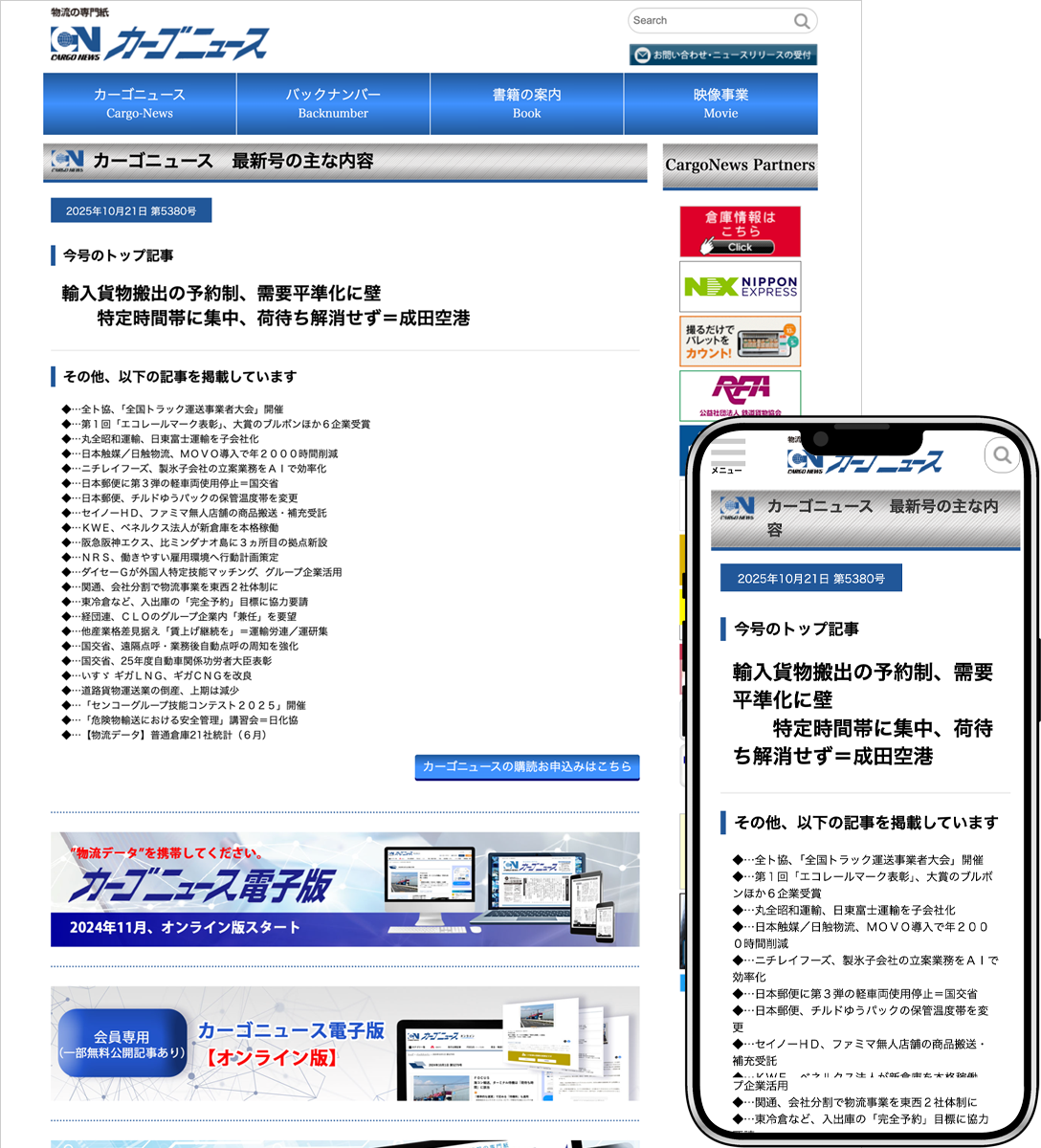 物流専門紙「カーゴニュース」の発行をはじめ、各種出版物の編集・発行や映像作品の編集・制作などを行う会社。